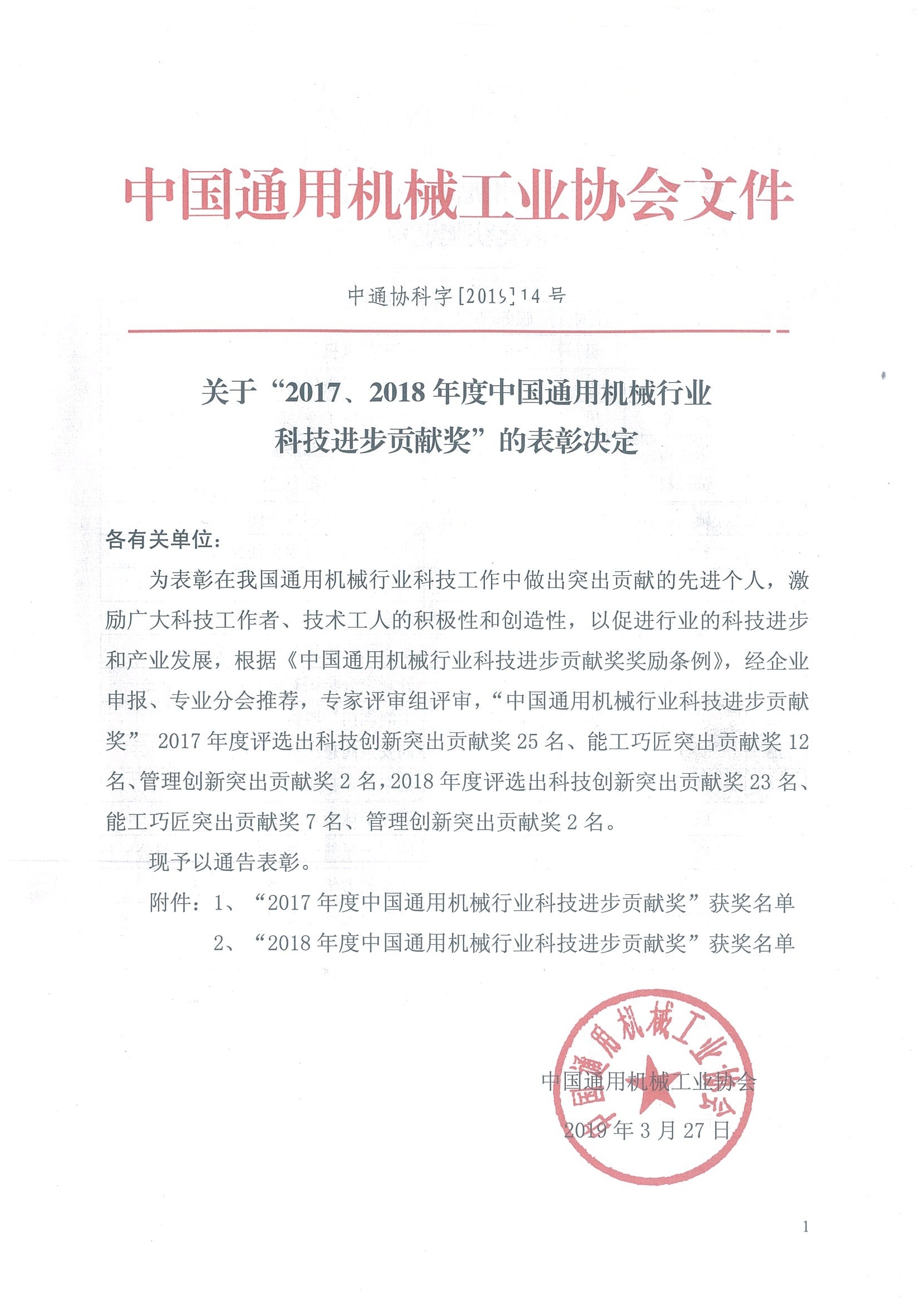 2019年3月26日至28日,中國通用機械工業(yè)協(xié)會七屆三次會員代表大會暨七屆四次理事會議和真空設備分會理事長辦公會等各分會會議在杭州召開。公司董事長黃毅同志作為中國通用機械協(xié)會副會長、中國通用機械協(xié)會真空分會理事長、中國通用機械協(xié)會泵業(yè)分會副理事長、中國通用機械協(xié)會干燥分會副理事長出席會議;公司副總經理、總工程師徐法儉同志作為標委會成員出席會議。會上,表彰了為我國通用機械行業(yè)科技工作做出貢獻的先進個人,公司員工劉豪同志因杰出的工作表現(xiàn)和卓越的工藝創(chuàng)新成果被協(xié)會評選、授予“能工巧匠突出貢獻獎”榮譽稱號。
