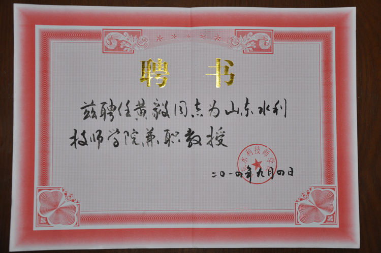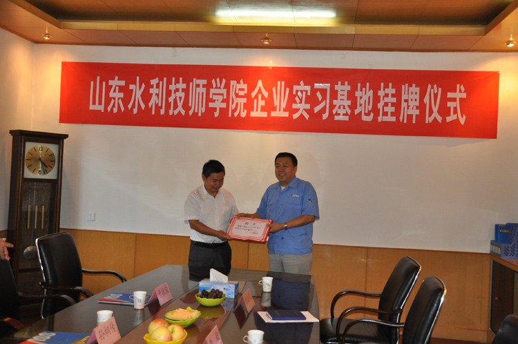 公司與山東省水利技師學(xué)院教學(xué)實(shí)習(xí)基地“校企合作協(xié)議書”,于9月18日在省水利技師學(xué)院簽訂,同時(shí)公司董事長、總經(jīng)理黃毅被省水利技師學(xué)院聘為兼職教授。