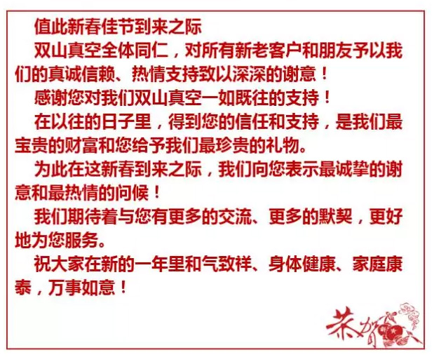 摘要:雙山真空給您拜年了!